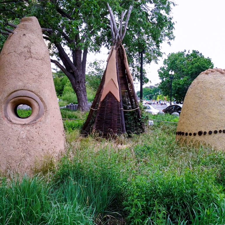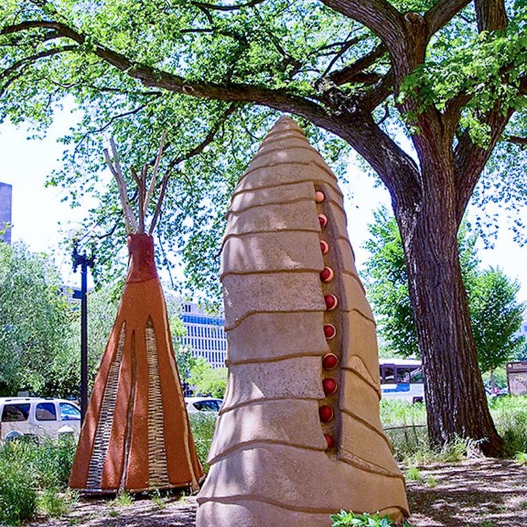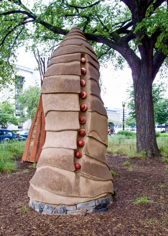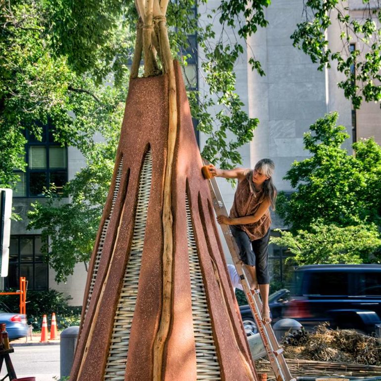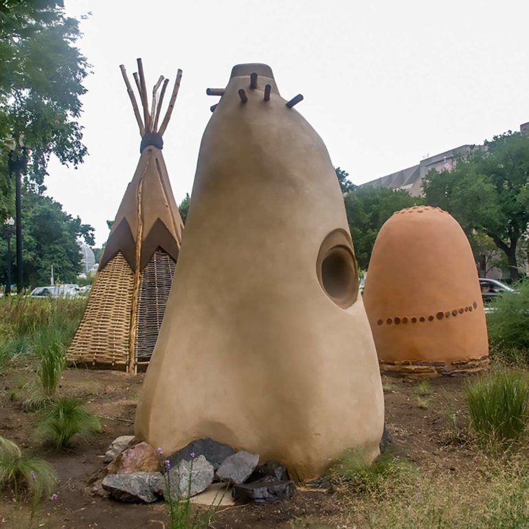 Santa Clara artist Nora Naranjo-Morse, Athena’s aunt, won a competition to construct a group of sculptures outside the Smithsonian’s National Museum of the American Indian (NMAI).  Nora is a sculptor who works primarily in clay and bronze. Her work can be found in the collections of museums throughout the United States, exhibitions at the White House, the Canadian Museum of Civilization and the Institute of American Indian Arts in Santa Fe, N.M.  She is also known for her book, Mud Woman – Poems from the Clay.
