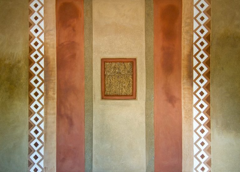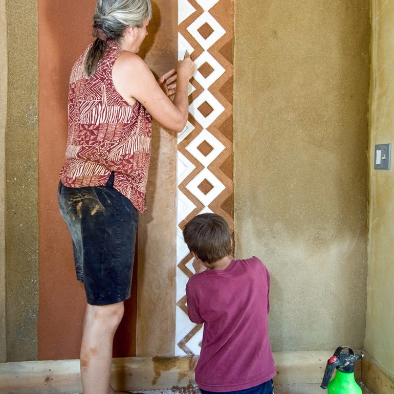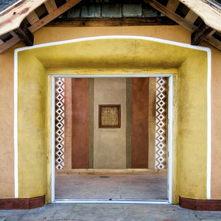 Members of Builders without Borders (BWB), a network of ecological builders and volunteers, came together to create a small straw bale building as part of the USBG exhibit. Our part in the project was to do some of the interior plastering, in particular, the decorative wall that is seen through the entrance of the building. It was our second year in a row working near the Capitol and working with all those who contributed to this wonderful project was simply a whole lot of fun.