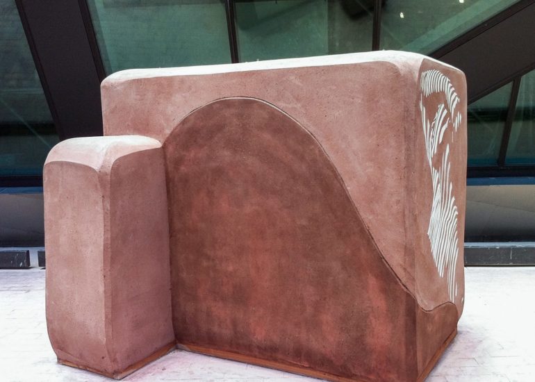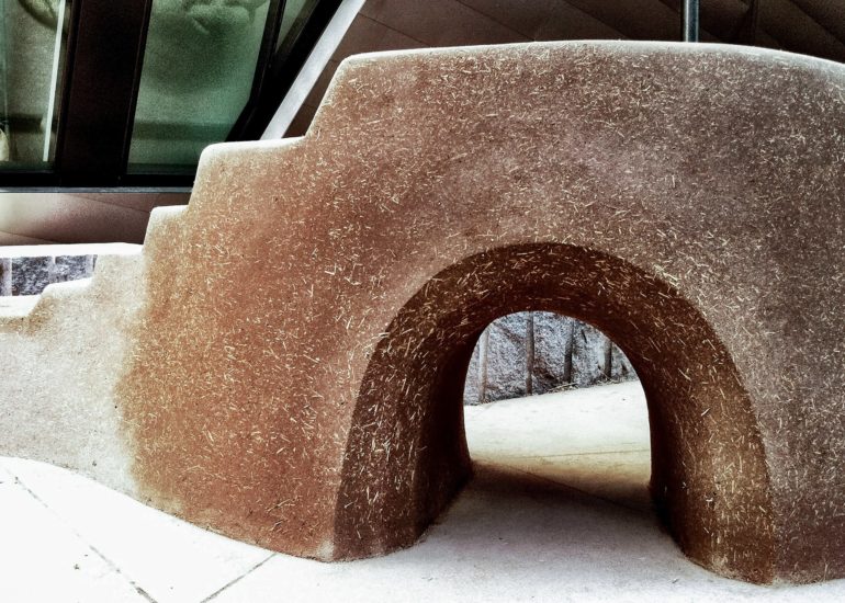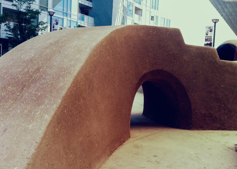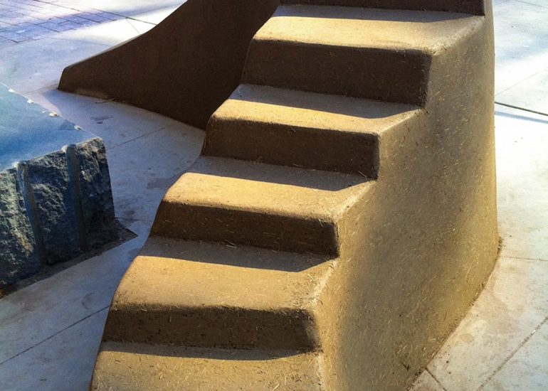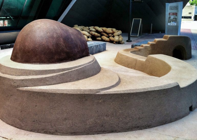 Our summer program was called Bill and Athena Steen’s Clayground. We worked in combination with the general public at the Martin Plaza, outside the Hamilton Building, which is new wing of the museum. The main idea behind the Clayground was to construct an outdoor clay play space using techniques and materials that would be easy so that anyone could join the process. Both children and adults joined in the action mixing cob and plasters and were part of building seating, plastering, an oven, walls and a clay slide with stairway. Even with an inexperienced workforce, the final pieces were beautiful and sculptural.