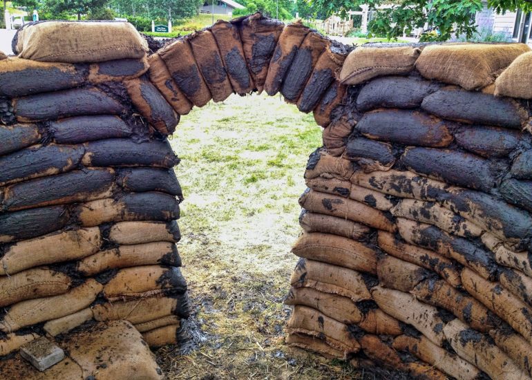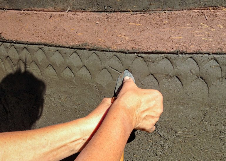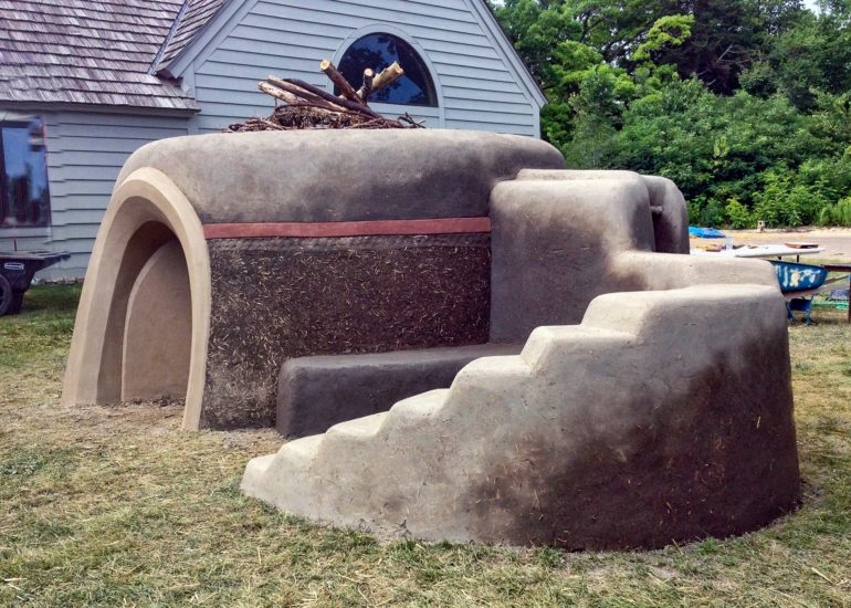 The intention of our project was to give families and children the opportunity to get their hands (and feet) in the dirt and have the experience of building something simple.  So over a three-week period we absorbed exuberant kids of all ages into our workforce.  They helped fill and tamp bags into shape, mix, sculpt and plaster.
