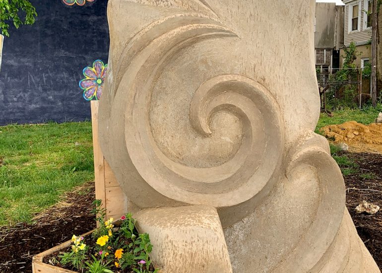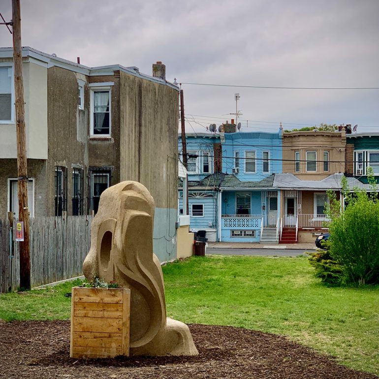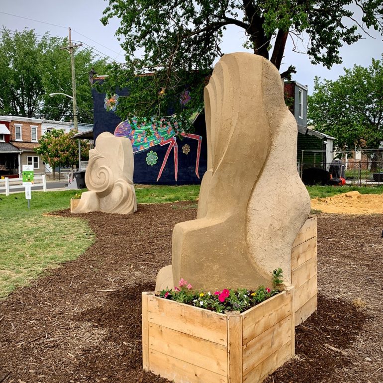 In 2020, we were accepted as one of six artists to take part in a 6-month-long community art exhibition on public lots previously used for illegal dumping in Camden, NJ.