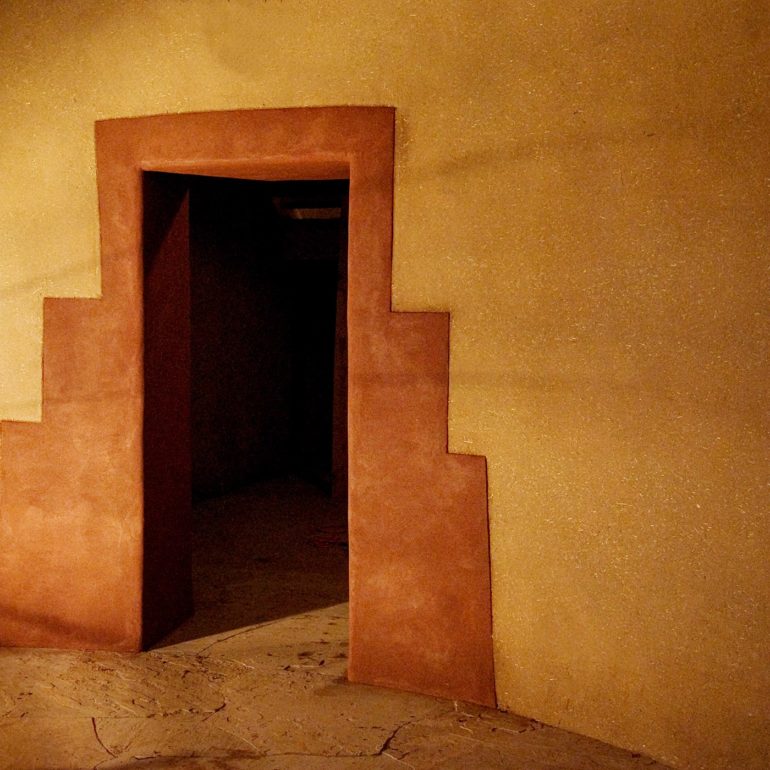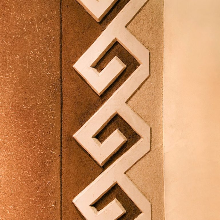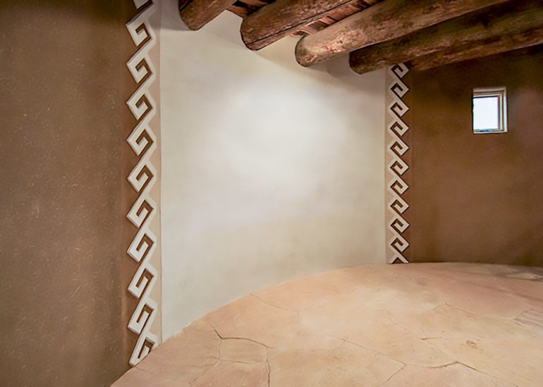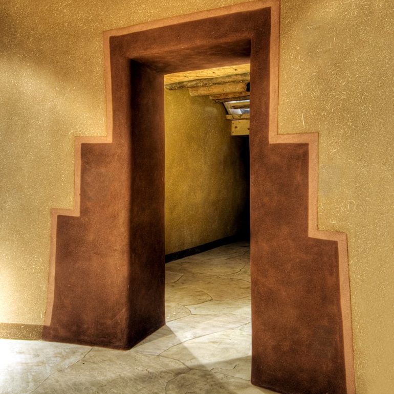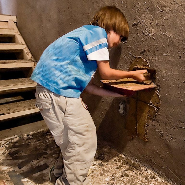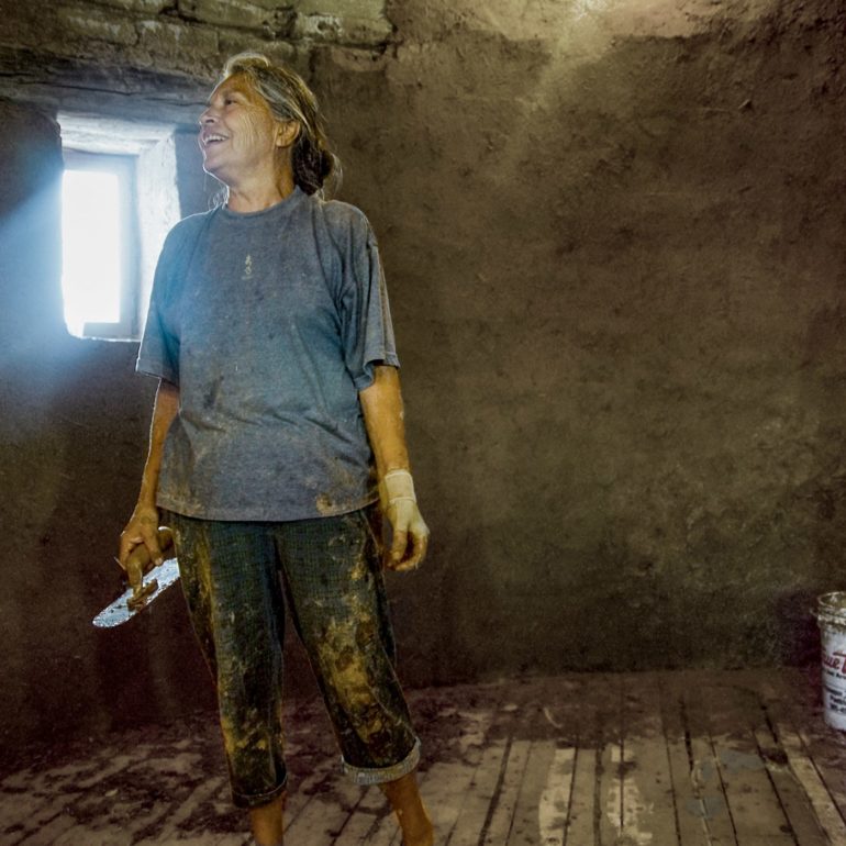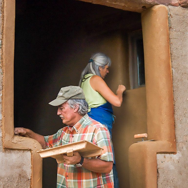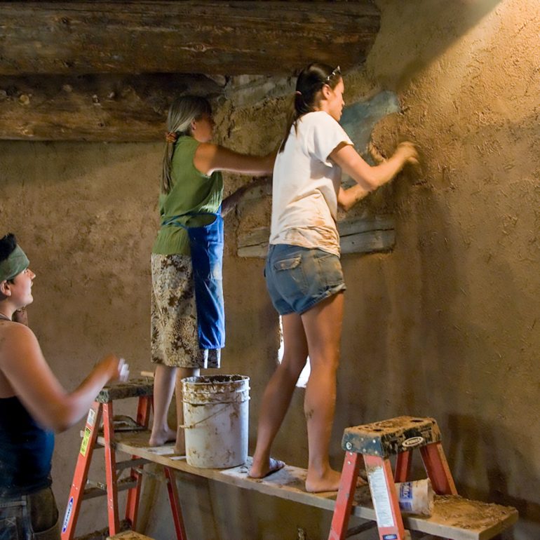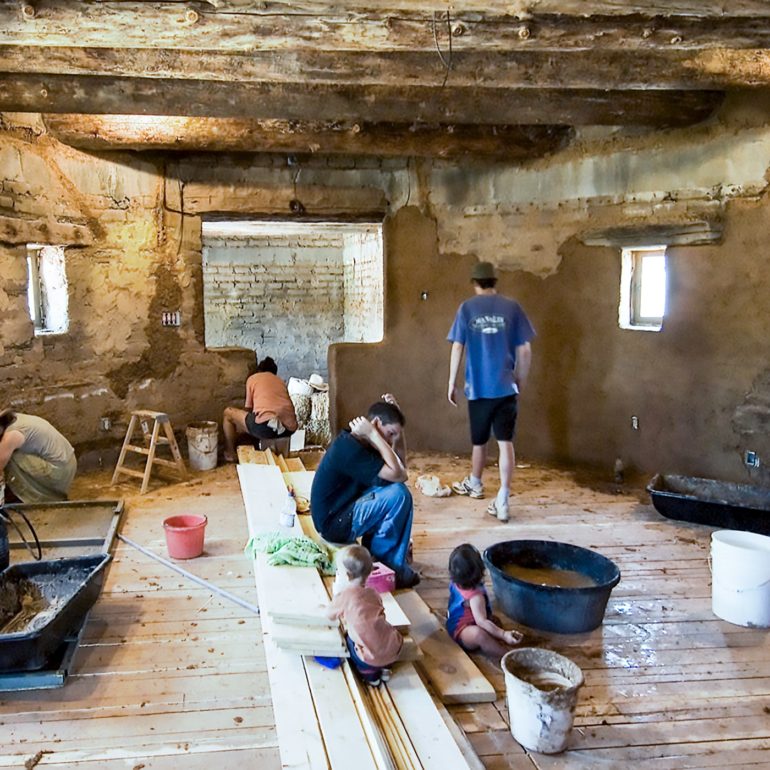 Family project to clay plaster the interior, adobe Tower Gallery which displays the works of internationally known sculptor, Roxanne Swentzell.